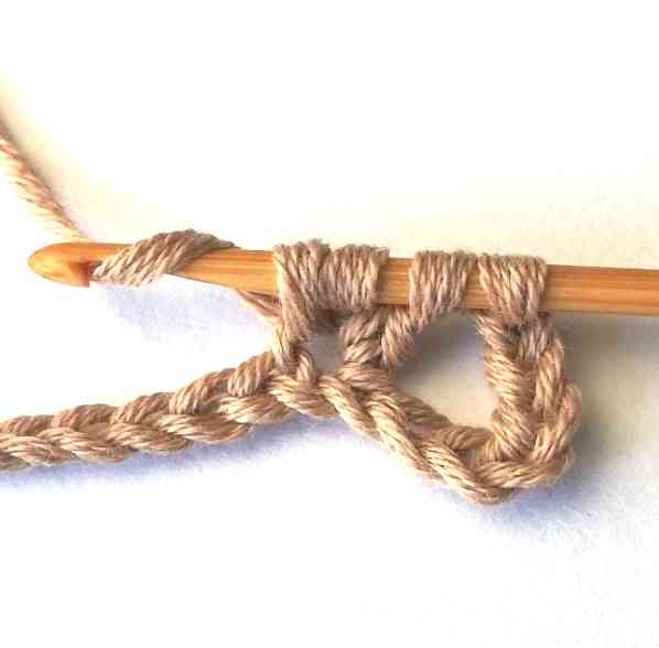 16. Chain two, skip two stitches and make a double crochet two together in the next stitch.