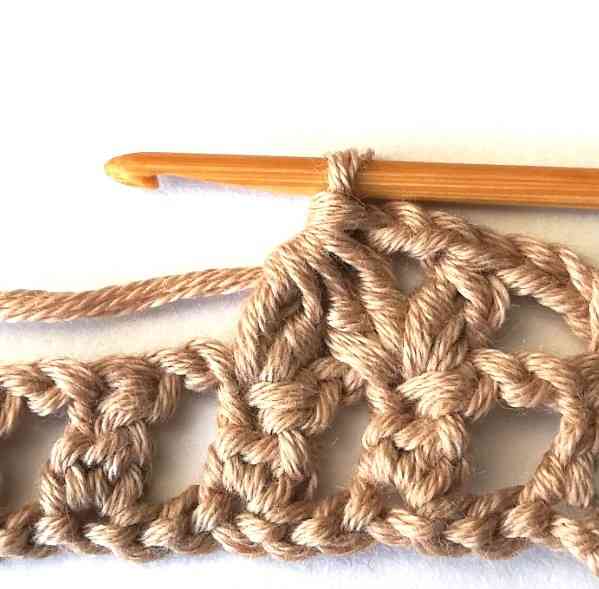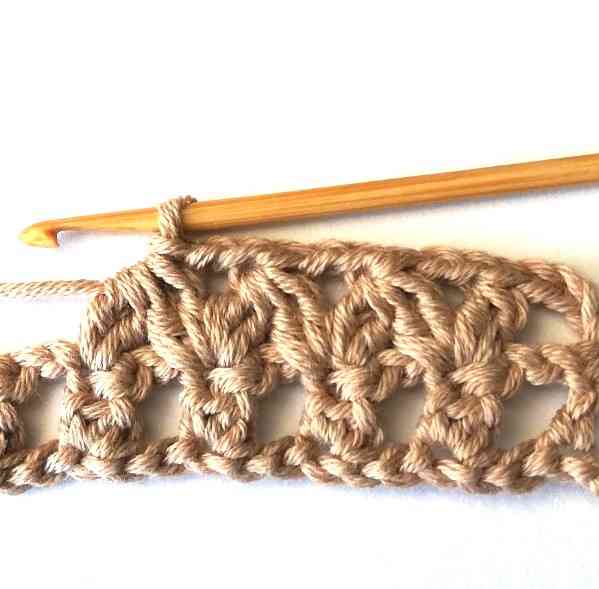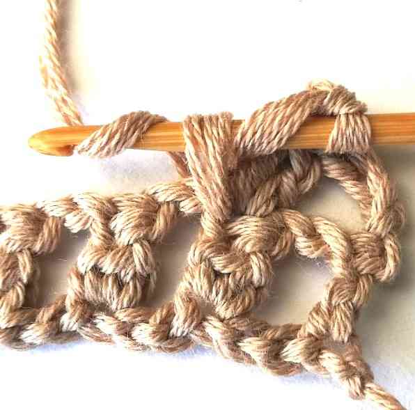 58. Then make a double crochet in the turning chain. For the rest of the pattern repeat rows 2 and 3.