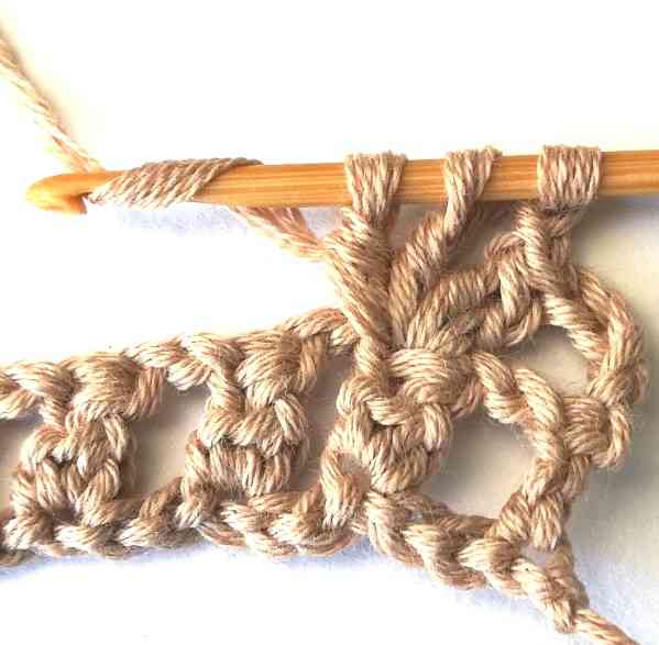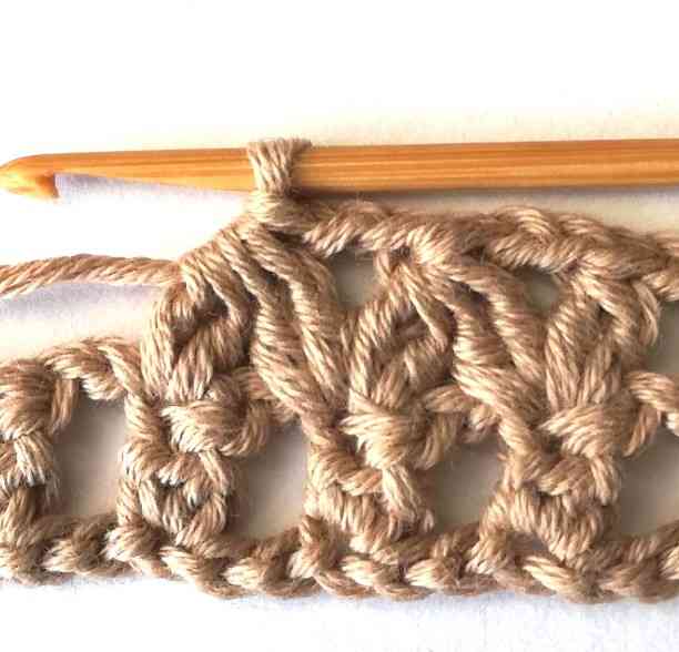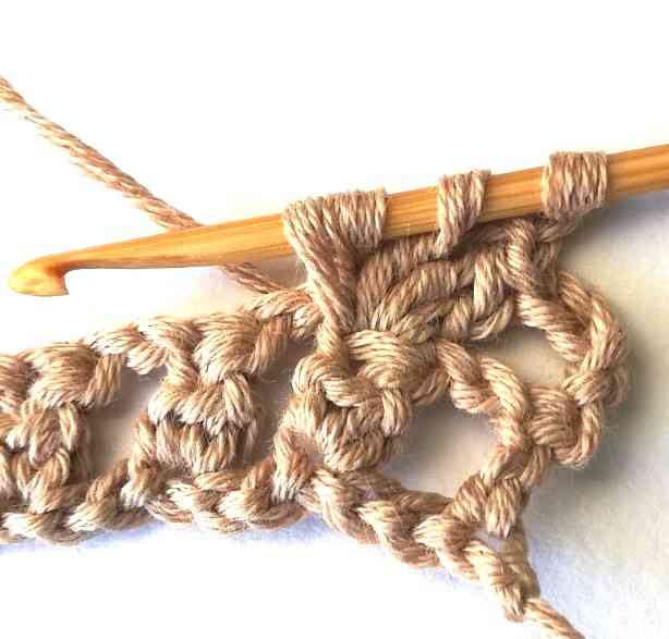 Photo instructions for the aligned sprout crochet stitch
