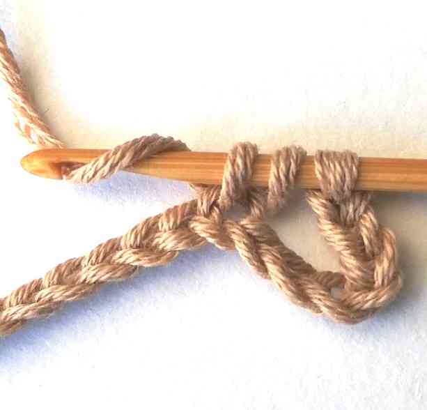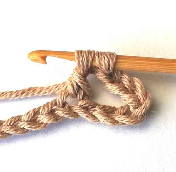 4. Pull the yarn through. Now you have three loops on your hook.
