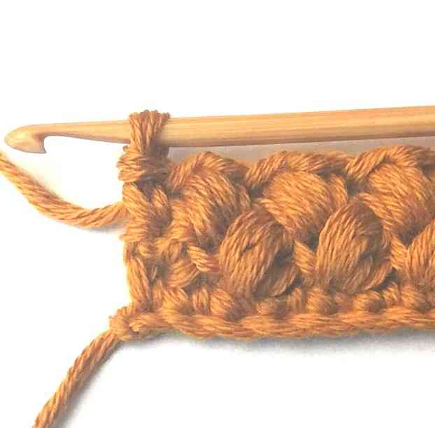 22. Continue working in the same way until the end of the row: skip one stitch and make a bean stitch.