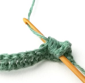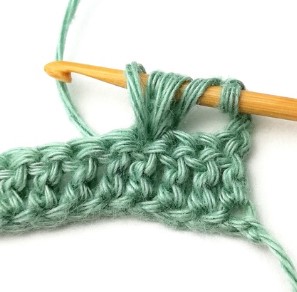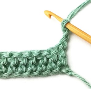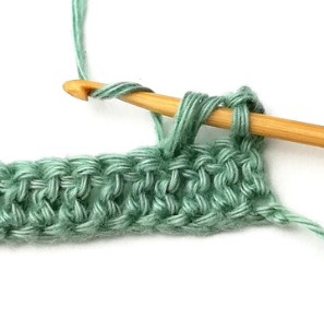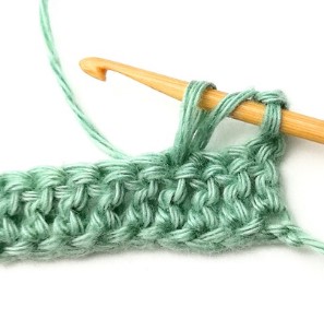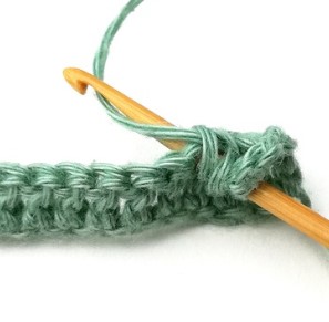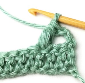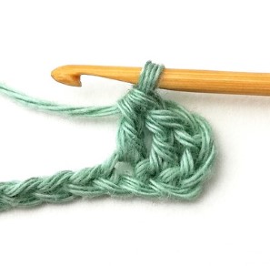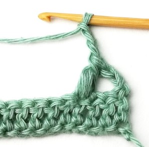 27. Chain three and turn your work around. Chain three counts as a stitch.