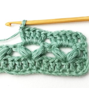 In this step-by-step crochet stitch tutorial I show how to make the block and puff V stitch. This crochet stitch tutorial includes detailed photo instructions. For this crochet stitch you should know how to make a double crochet. The tutorial below shows how to make a puff stitch. The block and puff V stitch is a repeat of two rows. The fabric turns out light and it has a beautiful texture.