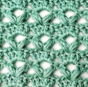 24. Then repeat: skip four stitches and in the next stitch make a puff stitch, chain three and another puff stitch.
