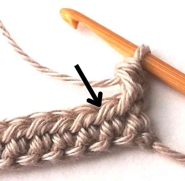 17. So, look at the back of your work and find the third loop of the half double crochet in the previous row.
