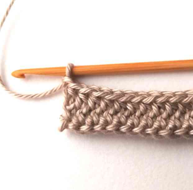5. Turn your work around. Chain one does not count as a stitch. You will make a half double crochet third loop only in the front. You will have to work in the third loop of the half double crochet in the first row (in the front).