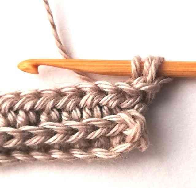 7. Insert your hook in the third loop of the half double crochet in the previous row.