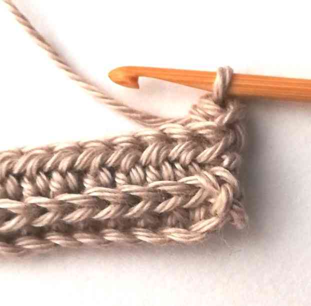 19. Insert your hook in the third loop in the back. It might seem a bit tricky in the beginning, but it will become a bit easier later.