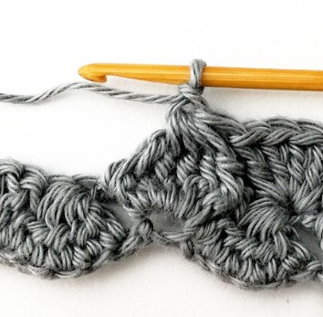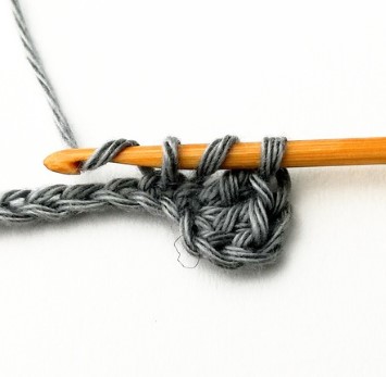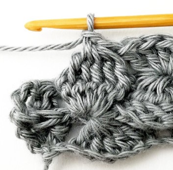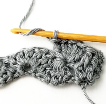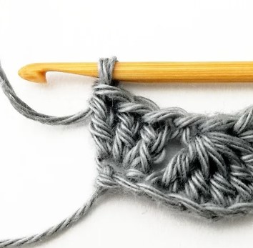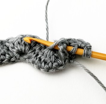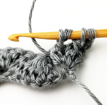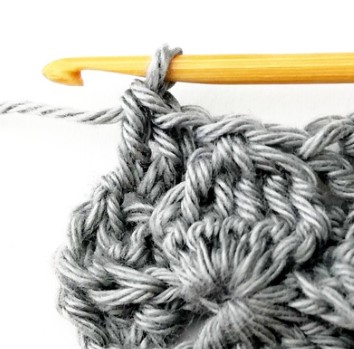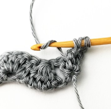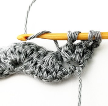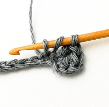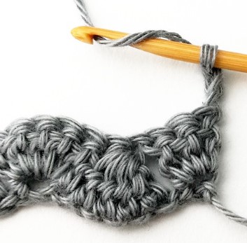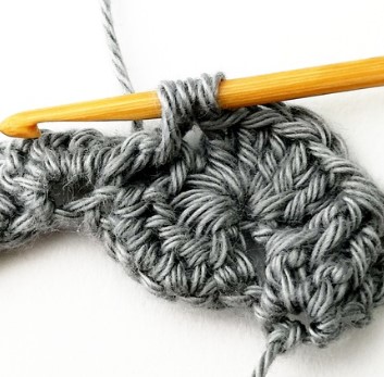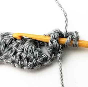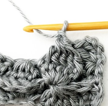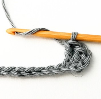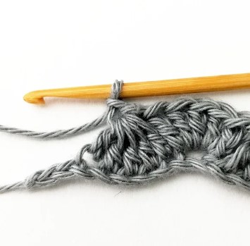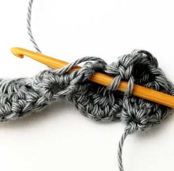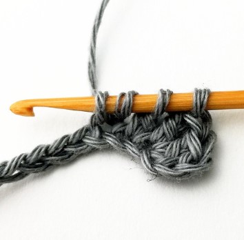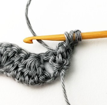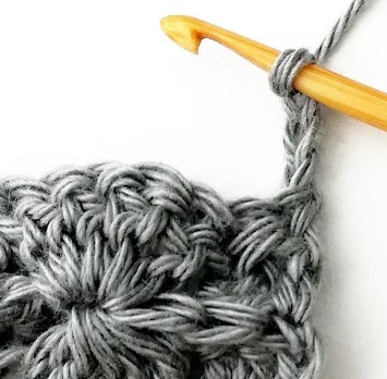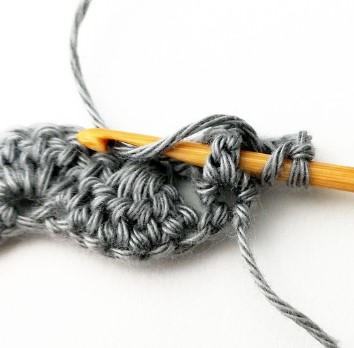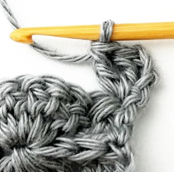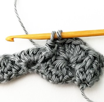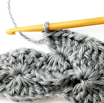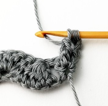 24. Chain three and turn your work around. Chain three counts as a stitch.
