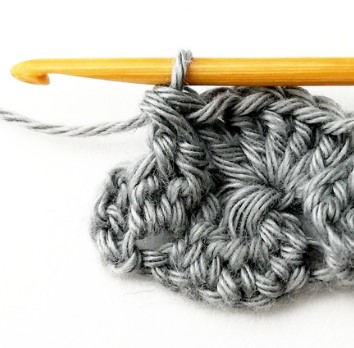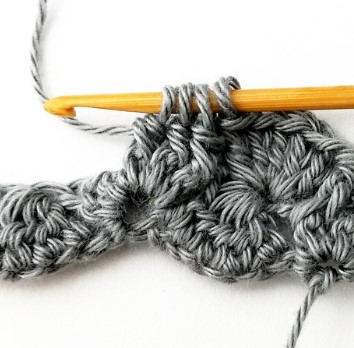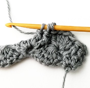 4. Next you will make a double crochet five together (dc5tog) working in the next five stitches. So, yarn over.