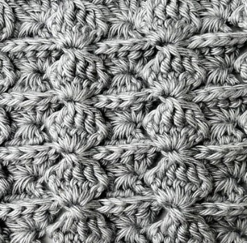 60. Continue working in the same way until the end of the row. At the end of the row chain one as usually.