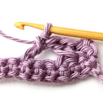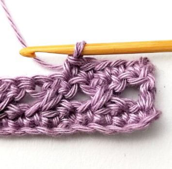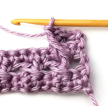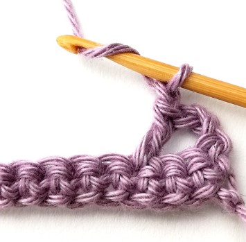 4. Chain three and turn your work around. Chain three counts as a stitch.