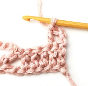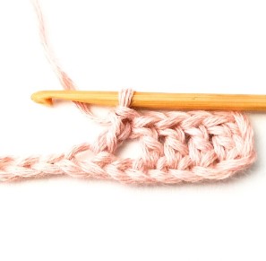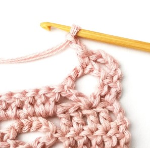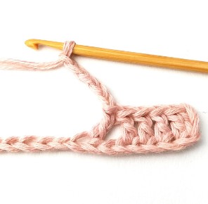21. Chain three and turn your work around. Chain three counts as a stitch.