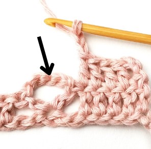 28. Skip two stitches and in the next stitch make a double crochet, chain five and another double crochet.