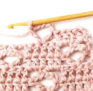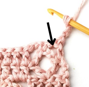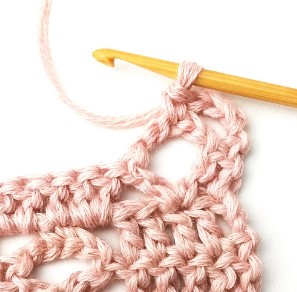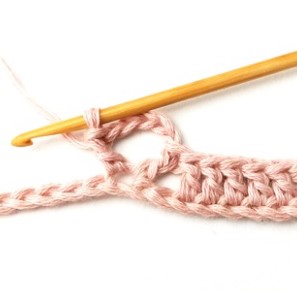 25. Make two double crochets in the next chain two space.