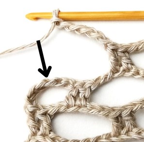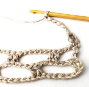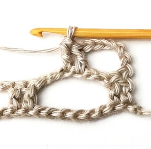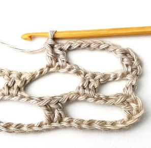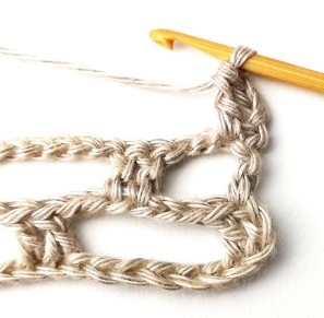 1. Start by chaining a multiple of eight plus four. You will start working in the fourth chain from your hook.