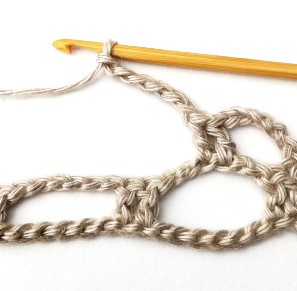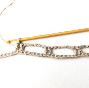 22. Then repeat: chain six and make two double crochets in the third and the fourth chain of the next chain six.