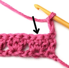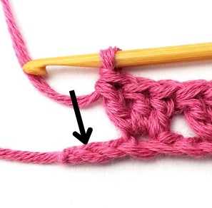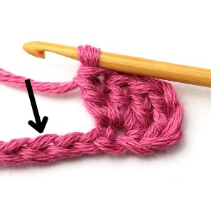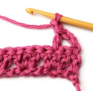 8. Chain three and turn your work around. Chain three counts as a stitch.