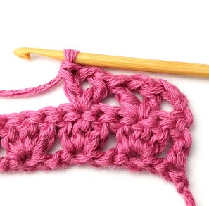 18. Make three double crochets in the next chain one space.