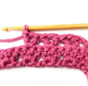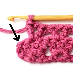 16. Chain three and turn your work around. Chain three counts as a stitch.