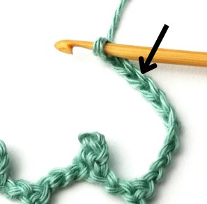 14. Skip the next four stitches and make a double crochet in the next stitch.