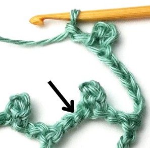 19. Skip the picot in the previous row and make a double crochet in the next chain.