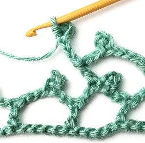 1. Start by chaining a multiple of five plus three. You will start working in the third chain from your hook.