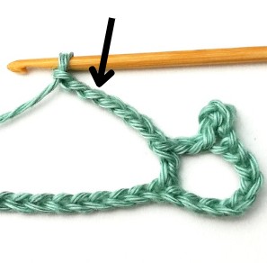 2. You will make a slip stitch. So, insert your hook in the third chain from your hook and yarn over.